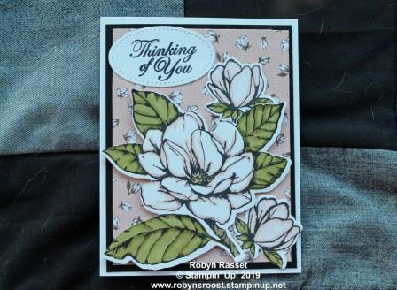 Today our STARS group are highlighting some of the awesome bundles that are available in the Stampin’ Up! Annual Catalog. I’ve chosen the Good Morning Magnolia Bundle. Although, being a northern gardener, I don’t get to grow Magnolias, I can still enjoy them in paper form! They are so easy to color with the Stampin’ Blend markers. I like to use the Petal Pink Combo (Light and Dark) to color the flowers. I don’t color in every spot, but just follow the artists lines and add the Dark Petal Pink and then go back with the Light Petal Pink if I think I need to blend in some areas. The leaves are done the Old Olive Combo markers.
