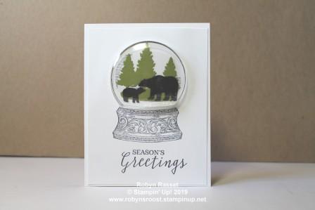 This is my first card made with the Still Scenes Bundle which is a new set from the Stampin’ Up! Holiday Catalog. It will be available for purchase starting September 4. The Snow Globe Plastics are very easy to work with. They have adhesive strips around both sides, making it super quick and easy to create the globe shaker. I highly recommend this bundles and an order or two of the plastic snow globes.