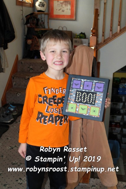 Huntley is 5 and loves bats, can you tell? He had a little help with stamping but he chose all of his colors. Right now this is Huntley’s camera smile.