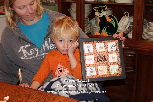 Wyatt is 3 and did all of his stamping himself. The middle square on the bottom looks like he added a fingerprint signature. He was busy having a snack and didn’t really feel like getting his picture taken but he humored me, sort of.