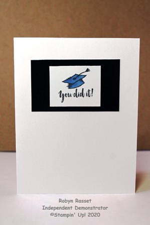 QC graduation card anyone? Quick and Cute that is. Start with a plain whisper white cardbase. Color the graduation cap in school colors and if wanted add a matt in the same color or use black as on this card. Have a card ready to go in 10 minutes.