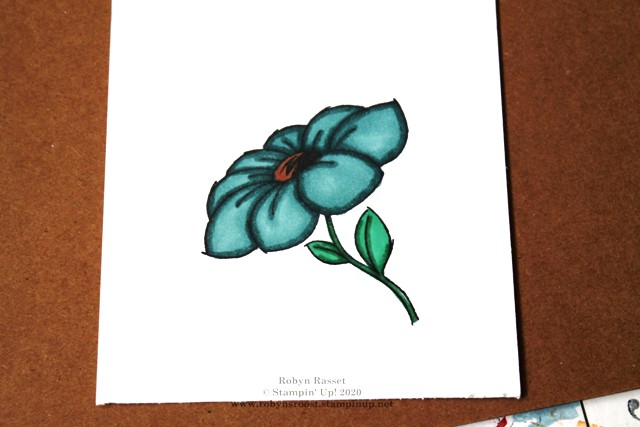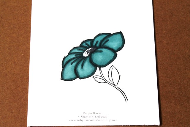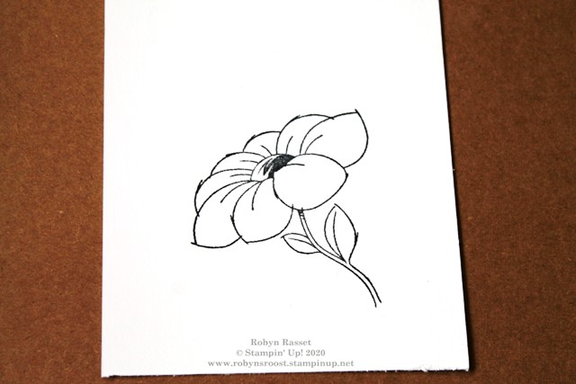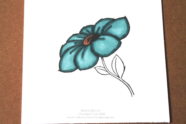 4.  Fill in the center of the flower with a dark Stampin’ Blend marker.