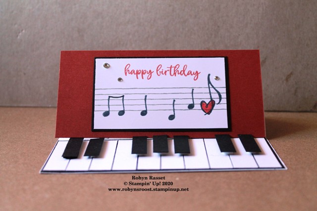 see a piano keyboard! Fun, right? It does take a little bit more time and work than a normal card but it isn’t hard to do with some patience. Placing the white keys onto the black base is the hardest part. I did do some growling before I got those on evenly. My suggesting is to not rub them down but place them loosely until all of them are in place.