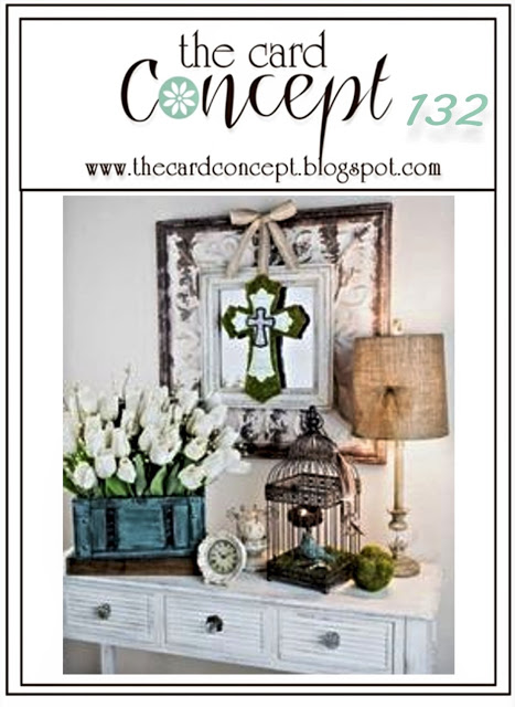 I needed some inspiration for some Easter cards and The Card Concept Challenge was a great starting point. Oh my, there is so much in this photo that could be used to inspire a card! Flowers, a cool lamp, the birdcage, a clock, the dresser, but I chose to focus on the intriguing cross.