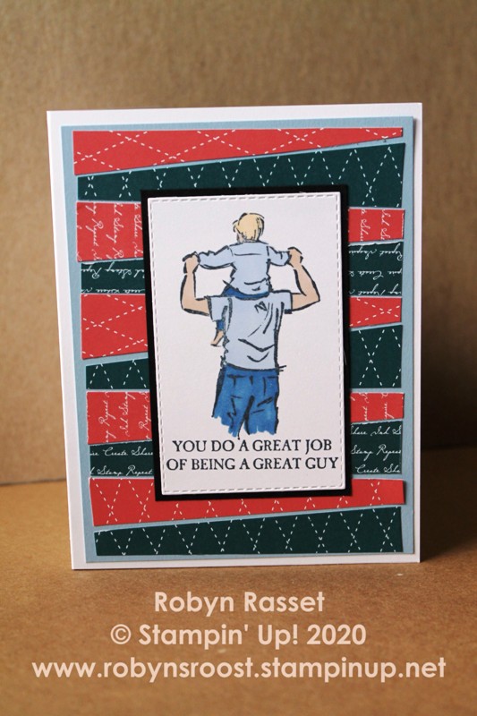 So, I have to admit that I really wasn’t thinking about Father’s Day or Graduation yet, but I did see lots of the Scrappy Strip Technique cards online and decided to have a go at it for a Father’s Day card. I love this image from the A Good Man stamp set and the greeting. I have 2 sons who are dads and they are both great fathers, and I’m really proud of them.