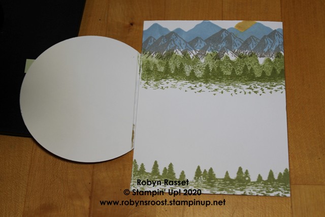 I used Stampin’ Blends to color the images on the circle front, so because blends bleed through the paper, I cut a second circle and adhered it to the inside so that it would have a fresh clean look.