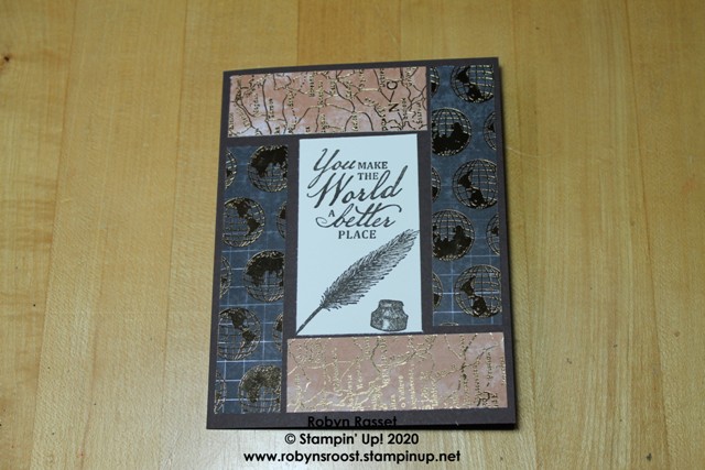For this card, I did just a simple greeting and a flourish for the inside. If you want to get the World of Good DSP and the Beautiful World stamp set, click on the links below to start shopping. During the month of June, you can get the Beautiful World Bundle, stamp set and dies, for FREE, with the purchase of a Starter Kit.