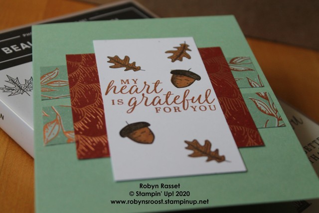 There is a cute trio of punches that match up with Beautiful Autumn stamp set and can be purchased as a bundle with the stamp set for a 10% discount. I didn’t use them on these cards, but would recommend purchasing them with the stamp set. I have added the bundle to the product list.
