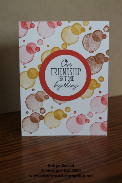 I was using my new 2020-2022 In Color inks, Cinnamon Cider and Bumblebee which were very juicy. The bubbles stamp is a distinktive style stamp and is best used with a dryer ink pad to retain the delicate photo quality of the image. Less ink is definitely better with the distinktive stamps.