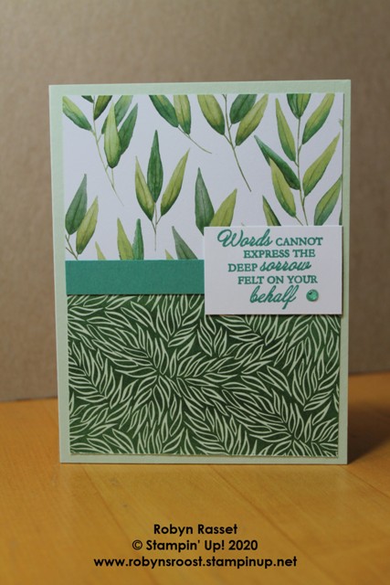 Need a quick sympathy card or just want to have one handy? This card goes together in minutes. The Here’s a Card stamp set consists of 14 greeting stamps. I love that they can be paired together for the front and the inside of a card.