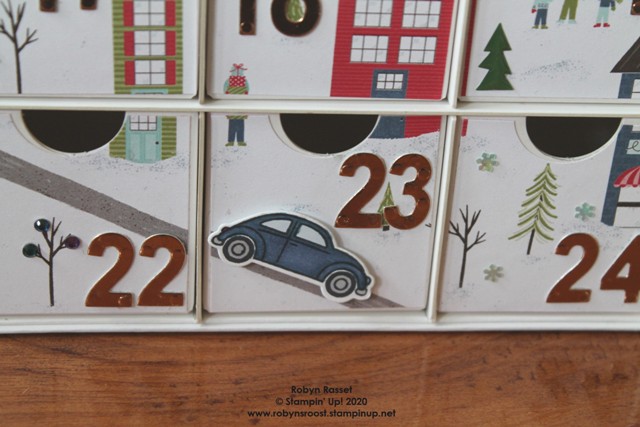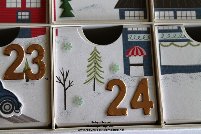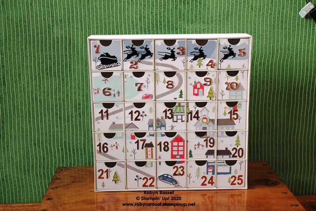I finally got the Christmas Countdown Kit done that I purchased last year! My plan was to make one for each of my 6 grandsons, but since I never got even one done, I didn’t purchase the other 5 kits last year. I was a bit disappointed with myself, but I was given a second chance when Stampin’ Up! carried the Christmas Countdown Kits over this year, YAY!