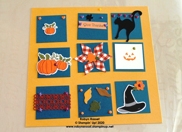 I just had to share these last two photos of samplers that my 5 and almost 3 year old grandson made with my September Paper Pumpkin Kit left over pieces. I had to help with the Stampin’ Seal and some placement, but only when they requested the help. It’s hard not to tell them what I think they should do, but they come up with some pretty creative ideas when left alone to design their own creations.