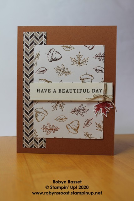 I used the Beautiful Autumn stamp set with one of the matching leaf punches and the Gilded Autumn Speciality Paper.