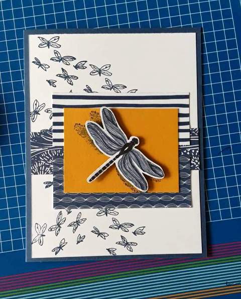 Create a fun swarm of tiny dragonflies by stamping the group of small dragonflies multiple times.