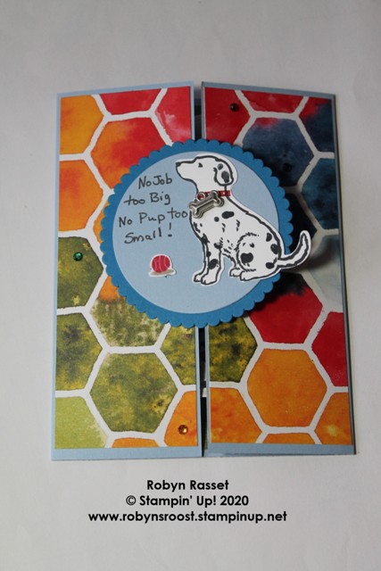 The greeting is from the Itty Bitty Birthday stamp set, which is on my must have list. The little hearts might be too much for some boys, but I thought that at 3 years old, Salem wouldn’t mind the little hearts from the Pampered Pets stamp set.