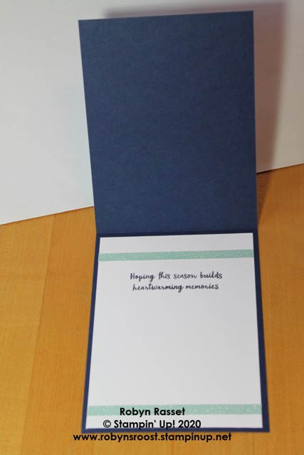 Cut the snowman out with one of the Stitched Shapes Dies and stamp the greetings directly onto the background. To create the top fold card base, score the cardstock at 5 1/2″ and then cut at 4 1/4″ to create 2 top fold bases.