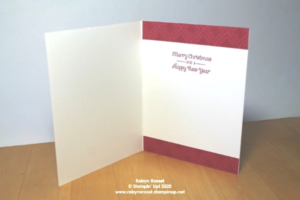 Once again, the Itty Bitty Christmas stamp set was used for the inside greeting. The ‘Tis the Season DSP strips were scraps from another project.