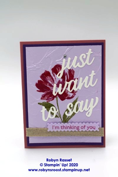 The 3/8″ ribbon on the card is also part of the Fine Art Suite and is simply called Fine Art Ribbon. Although it doesn’t show in these photos, the ribbon is shot thru with fine gold threads. So that although it has a homespun look, it also is a bit golden, for a very unique look.