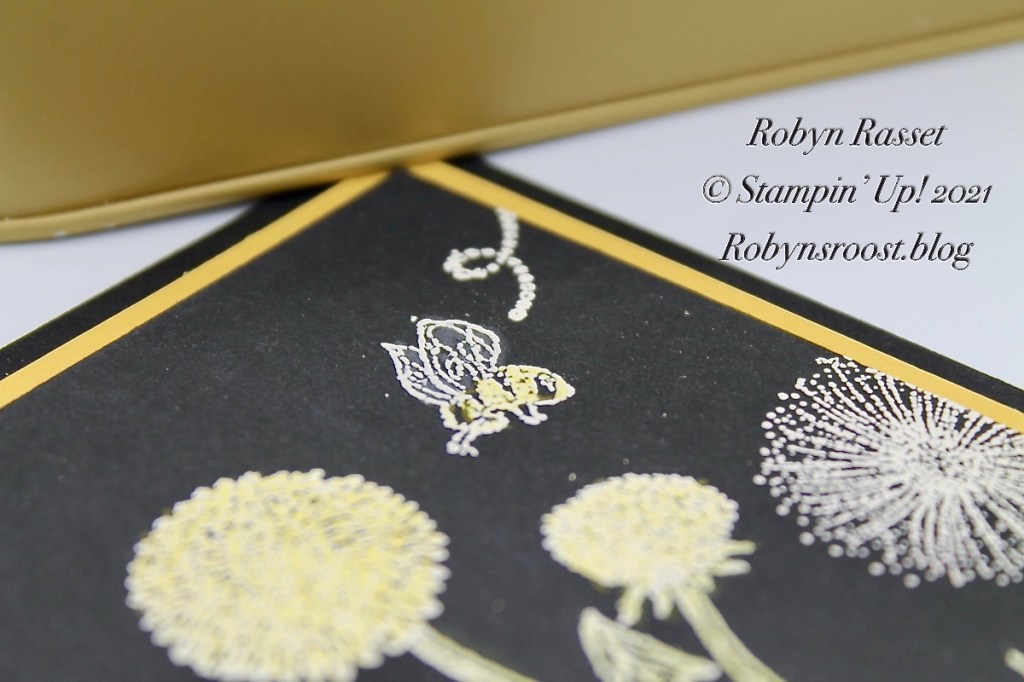 I love this little bee and his flight path stamp. Although I didn’t use the matching Dandy Wishes die set on this card I did want to mention it. It has a cool die that cuts out a flight path for the bee! I included it in the Product List below as a separate item but if you want to purchase both the Garden Wishes stamp set and Dandy Wishes Dies be sure to order the bundle to get the 10% savings.