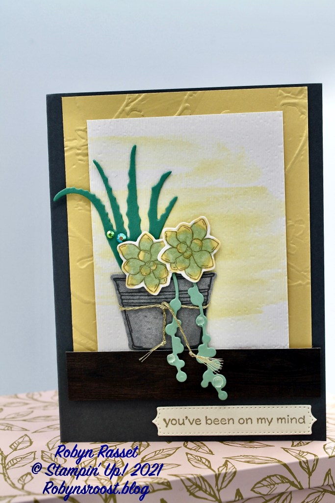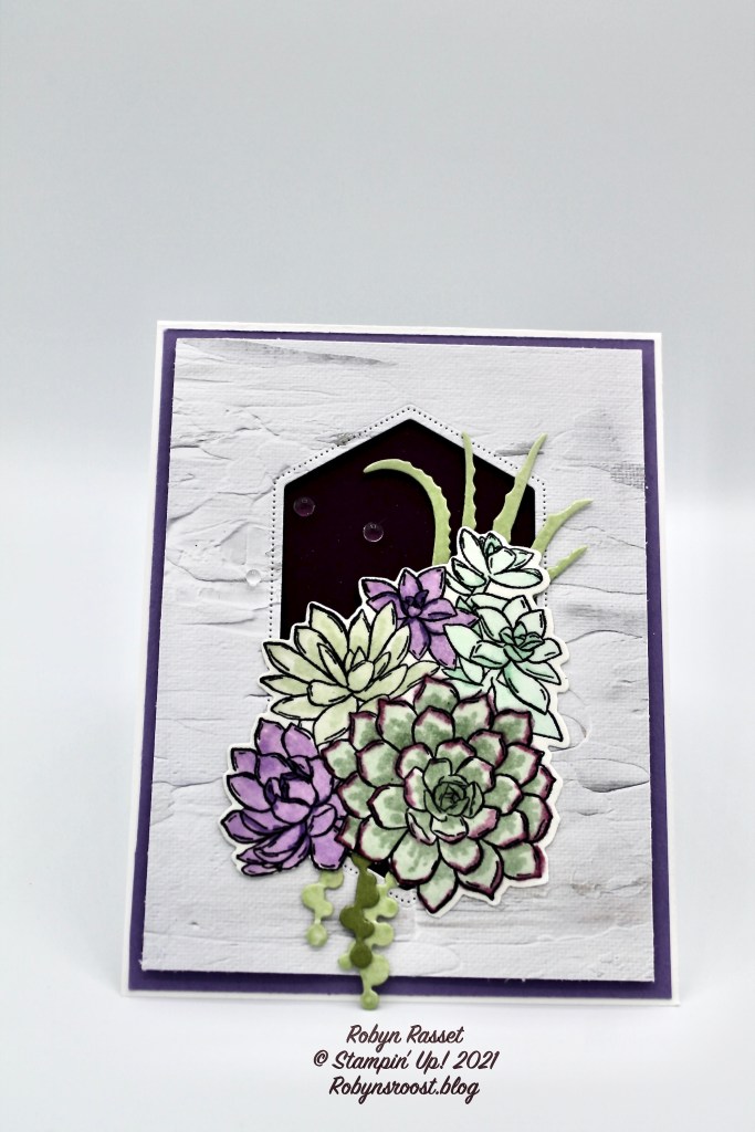 This week I’m fairly certain that it is actually Friday! I know that last week, I lost track of the days, lol. Today, I’m sharing some Swap cards that I received that are showcasing the Simply Succulent Bundle. Every time that I see the Simply Succulent stamps I think of my gorgeous Pony Tail (Burro Tail) plant at home and hope that my son Ethan hasn’t over watered it while I’ve been gone. He assured me during our phone conversation last night that all of my plants are still alive.