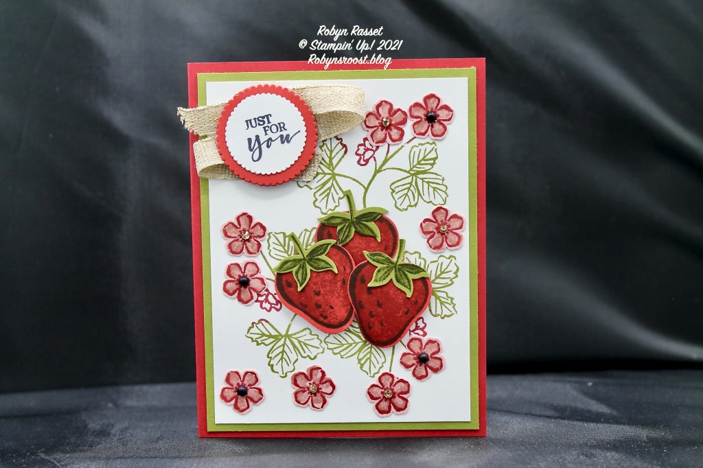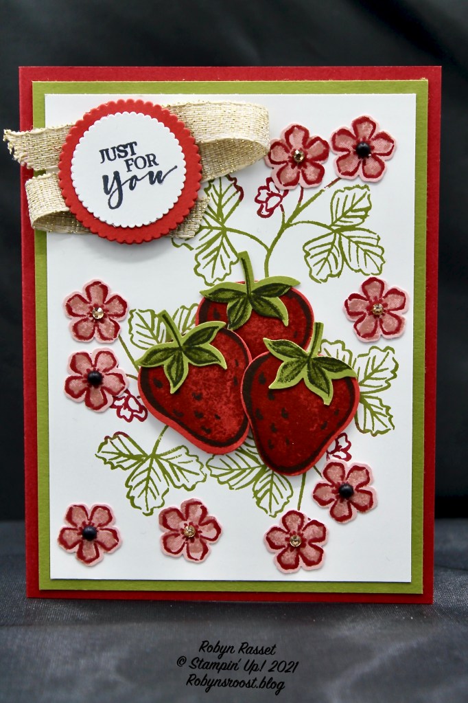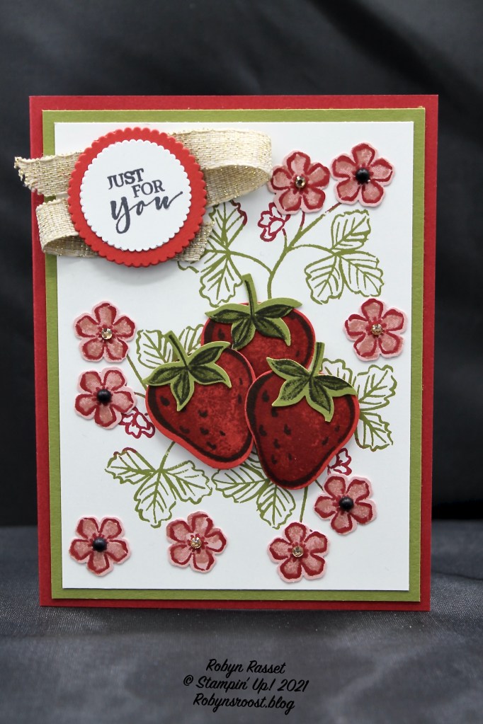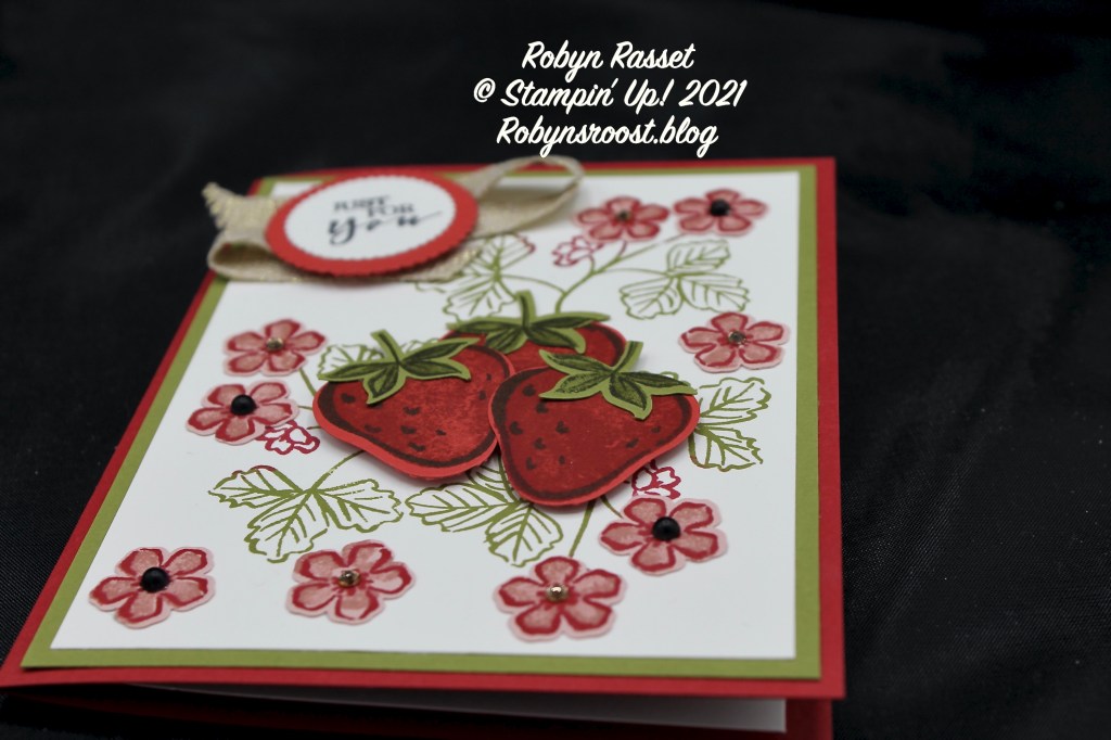 I hope that you enjoyed this card. Creating it made me think about picking fresh, juicy strawberries right out of my garden.