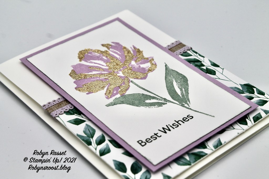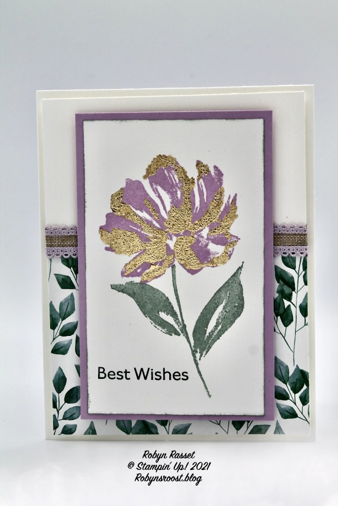 The Art Gallery stamp set was created with the Gilded Leafing in mind so is the perfect set to use for gilding. This card features some retiring products as well as some new products from the upcoming 2021-2022 Annual Catalog, and some products from the January to June Mini Catalog.