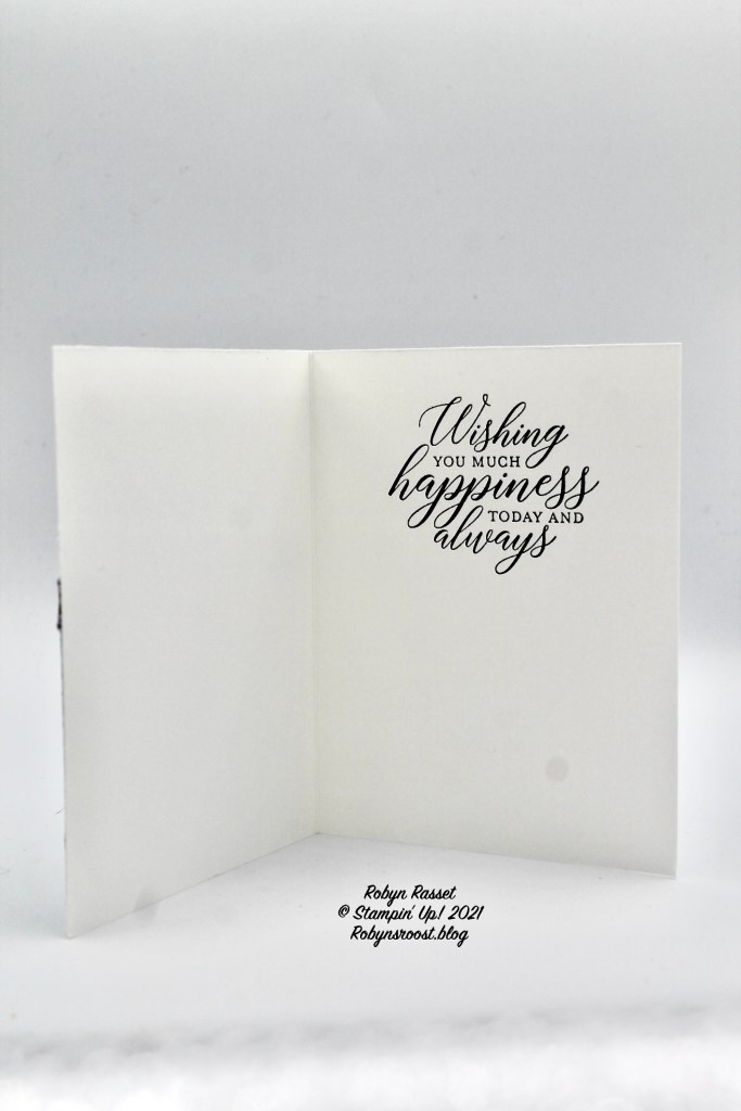 For the inside of the card, I chose a greeting from the retiring So Sentimental stamp set. The So Sentimental stamp set is another favorite of mine that is retiring. I know that I will continue to reach for this set for inside verses.