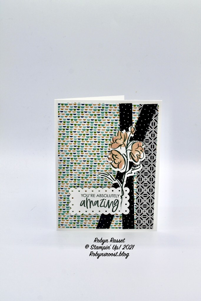 Of course, I started to put my card together before Connie gave instructions, so I adhered my widest strip on the edge instead of the middle.