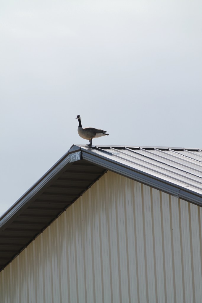 We have 6 geese who have been landing on our roofs. The house, the garage and and even our machine shed. These two walked the peak from one end of the shed to the other. It was the goofiest thing to watch.