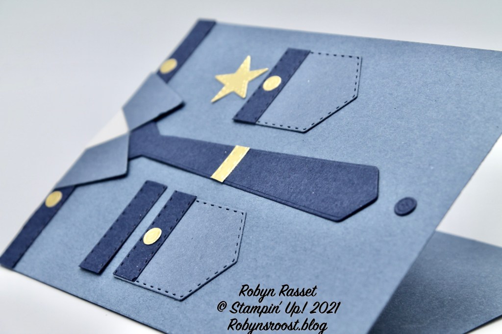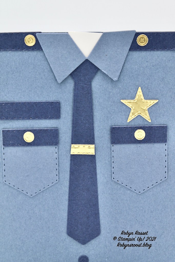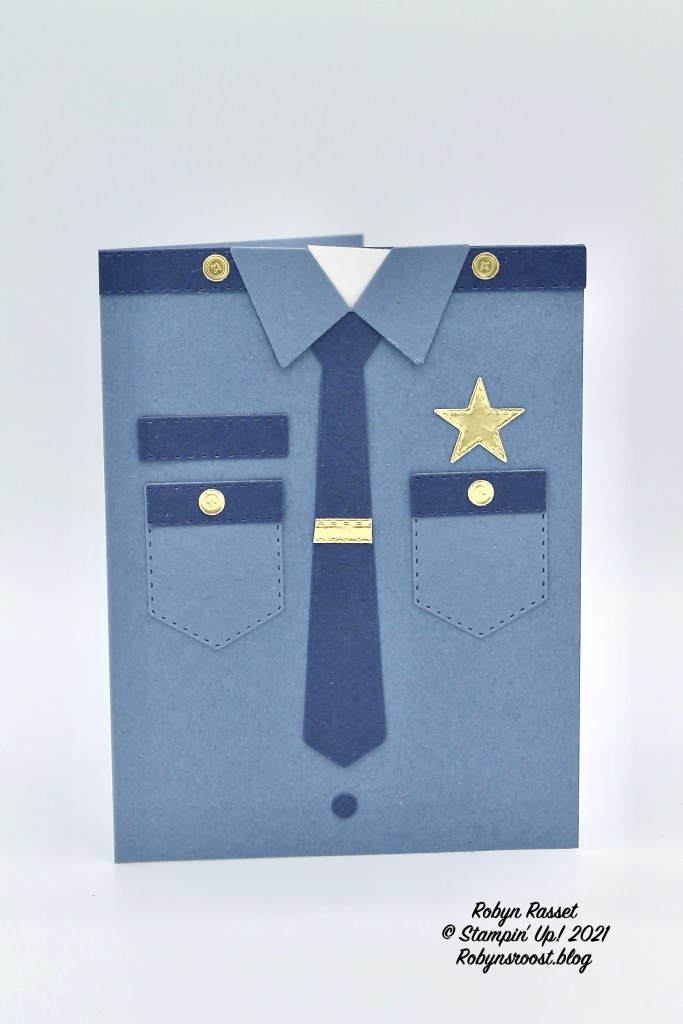 I CASE’d this card from one of my downlines customers, Sheila. I thought it was such a cute idea if you have anyone whose job requires them to wear a uniform. The colors and details could be changed to match the recipients uniform.