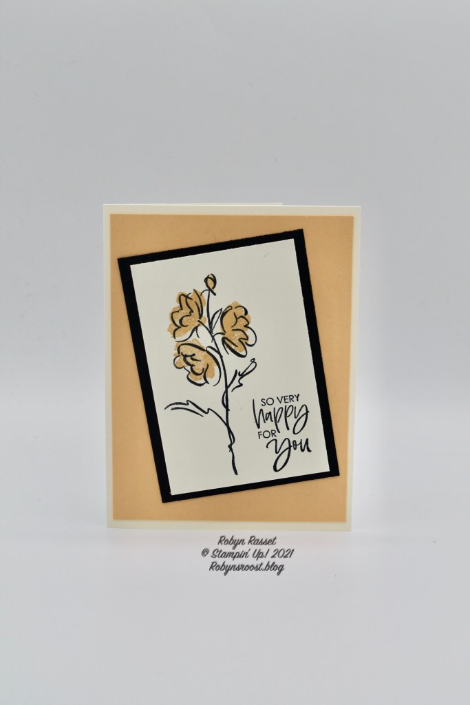 I’ve added a 4″ x 5 1/4″ piece of Pale Papaya card stock to the card front. It echos the flower color for a coordinated look.