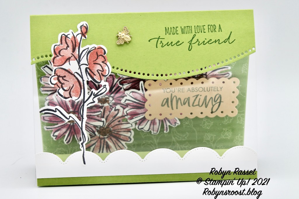 This Tent Card features the Color & Contour Bundle, plus the little Bee embellishment from the Pansy Petals Suite flew onto the card as a finishing touch.