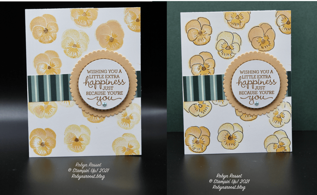 So I decided to try outlining the pansies to see if that balanced the card, and I’m still not sure. What do you think?