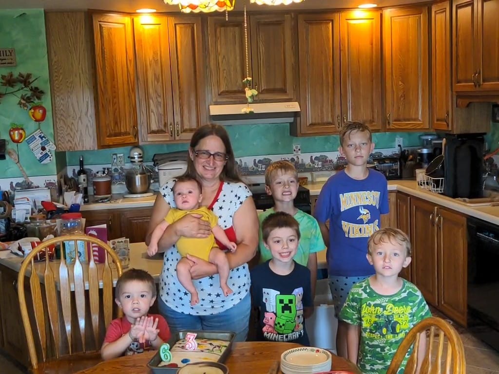 Here’s me with the gang. We’re missing one, he was at the party earlier but had to return to his mom’s so he missed the cake and the photo.