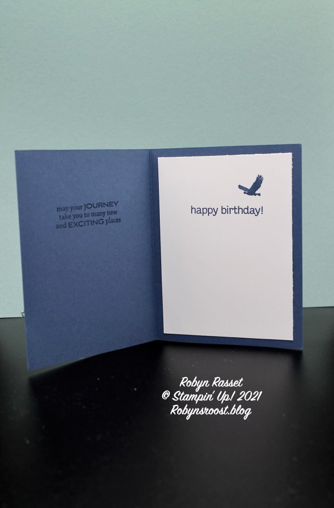 The happy birthday greeting is from the Turtle Friends stamp set but the rest of the greetings and images are all from the Reflected in Nature set. I really wanted to get the eagle somewhere on the card, and it fit perfectly above the birthday greeting.