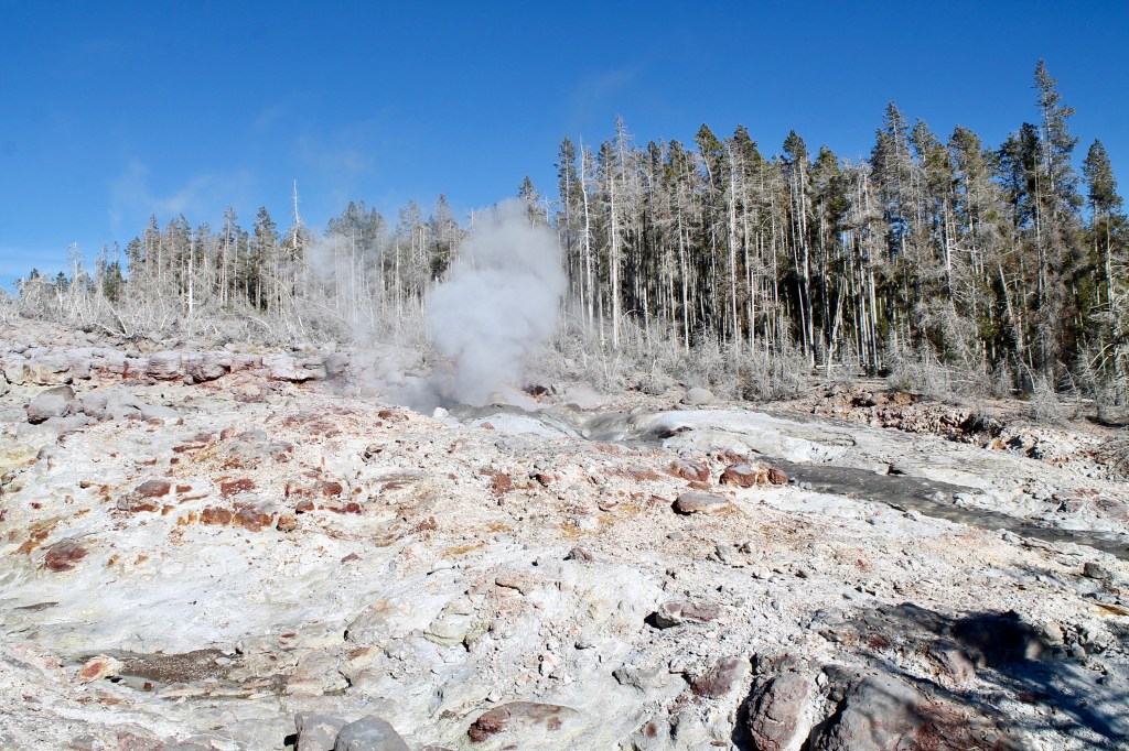 Norris Geyser Basin seemed much less active than I remember, but it is probably because Steamboat Geyser is now active. We didn’t see it go off, but from the looks of the area around it I think it might be best not to be close when it goes off, lol. There were notices all over in the parking lot that your car could be damaged by the spray.