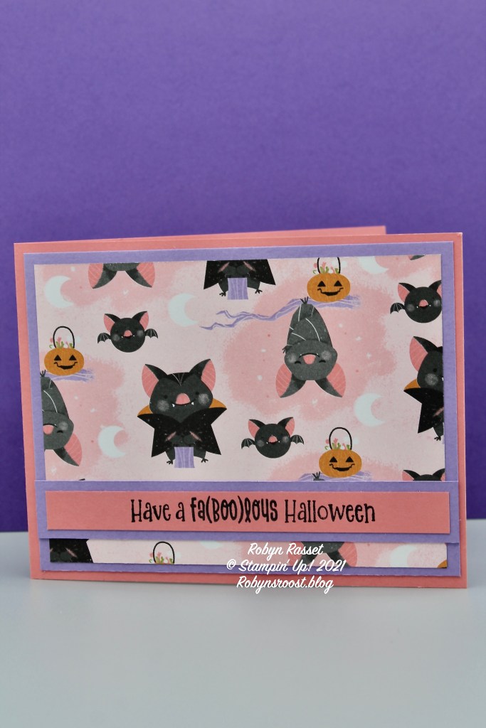 Now that I have a granddaughter, I thought that I would create a Halloween card in some more girly colors. Flirty Flamingo and Highland Heather work perfectly with the Cute Halloween Designer Series Paper colors.