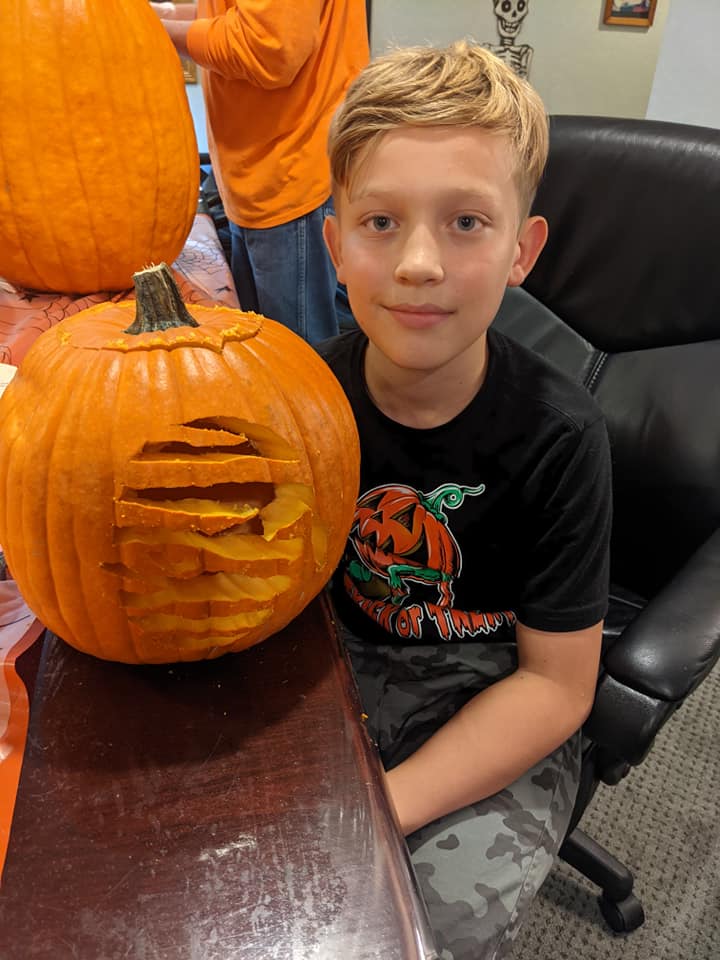 At 10, Bryson can now carve with the other master pumpkin carvers. No help needed.