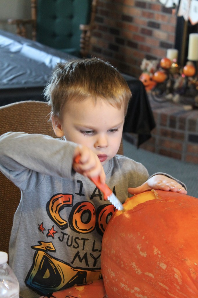 The Third Pumpkin Carving took place with Isaac and his sister Lilly. Isaac was pretty serious about carving this pumpkin!