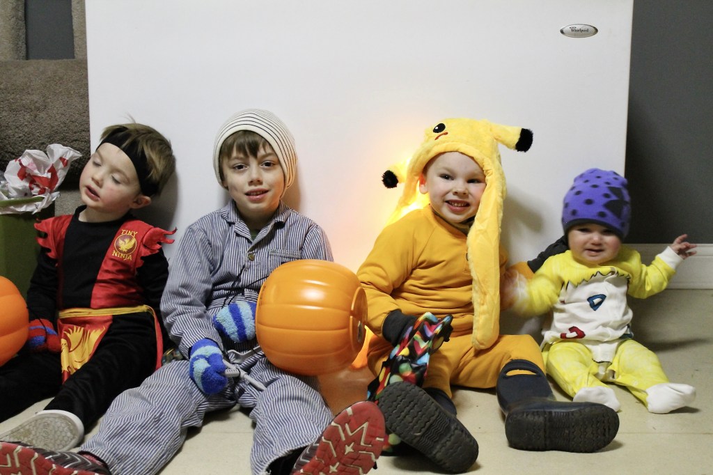 Bryson, Huntley and Wyatt were the next round of pumpkin carvers at the actual carving party. I’m glad that I snapped some quick pictures of their costume before they took them off!
