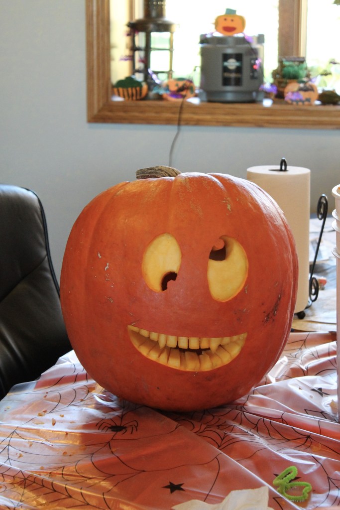 We have a tradition in our family of hosting a pumpkin carving party, which was started by my youngest son Ethan when his siblings started moving away from home. He grows pumpkins every year for the party and some years he and his friend Sheldon have competitions to see who can grow the biggest pumpkin. This year, no date worked for everyone so we ended up having 3 pumpkin carving gatherings.