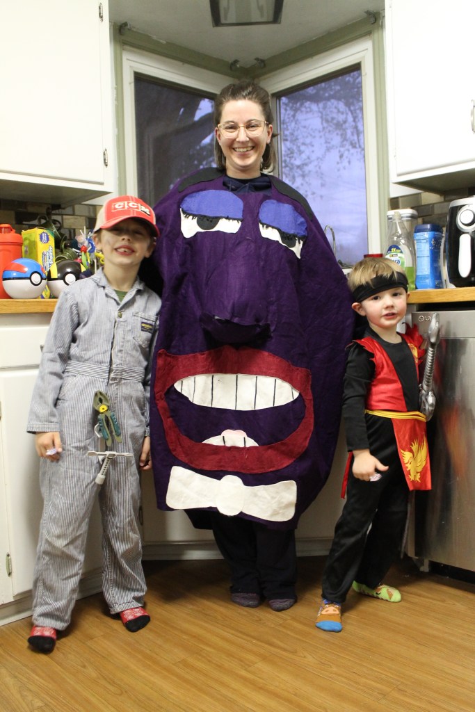 I was super impressed by this cute Pokemon Togepi costume that Corey made for Lilly. It’s a white onesie and he colored it with markers.