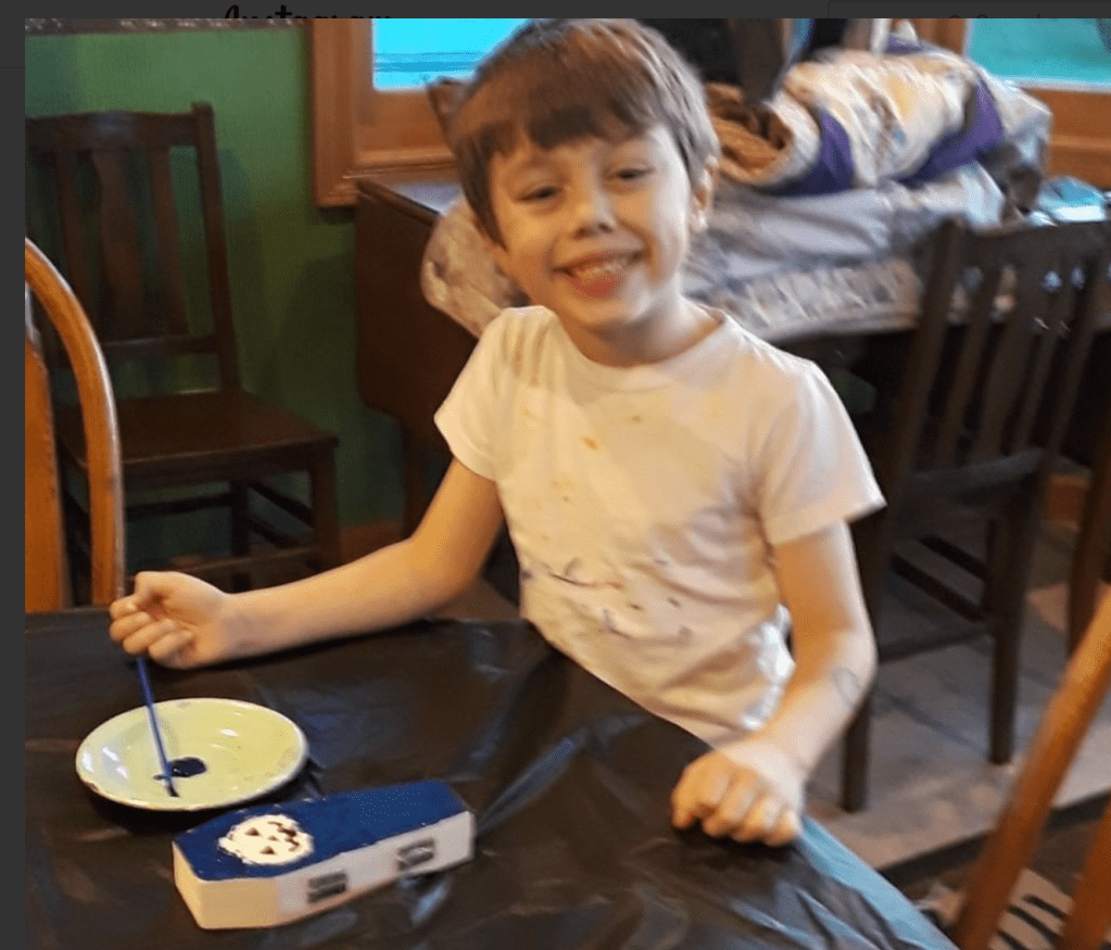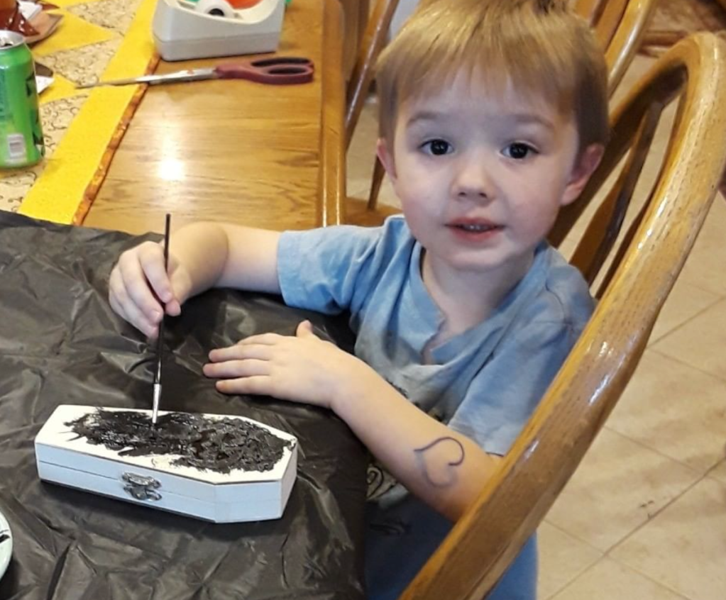 Salem and Zen were the first pumpkin carvers and they actually painted both their coffins and their pumpkins. It’s funny, I envisioned the coffins orange but not a single kid painted an orange coffin. Silly grandma, coffins aren’t orange!