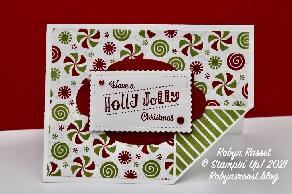 Finish off with a greeting label. This card uses the Stitched So Sweetly dies and Holly Jolly Christmas.