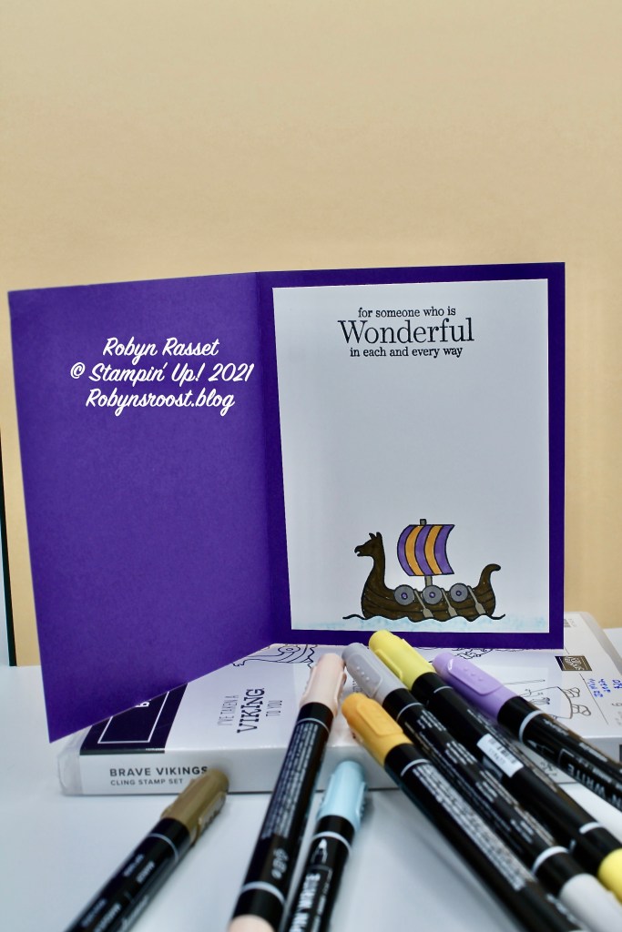 If I could add sound to this blog post, I’d add a Vikings War Horn sound! When I saw the new Brave Vikings stamp set I knew that as a lifelong Minnesotan I needed to order it! Now any of you who know me, know that I am not a football fan. One of the few ‘rules’ that I had when choosing who I would marry was that he couldn’t be a die hard football fanatic. I know absolutely nothing about football, but if I’m going to root for a team, it’s the Vikings. Besides, some of my family enjoy football and I think they would get a kick out of these cards.