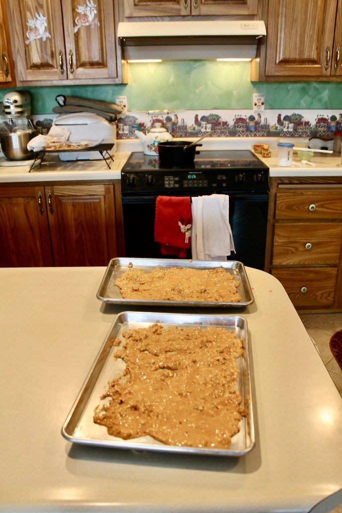 The Peanut Brittle is cooling and waiting to be cracked into pieces and placed in a pretty Christmas Tin.