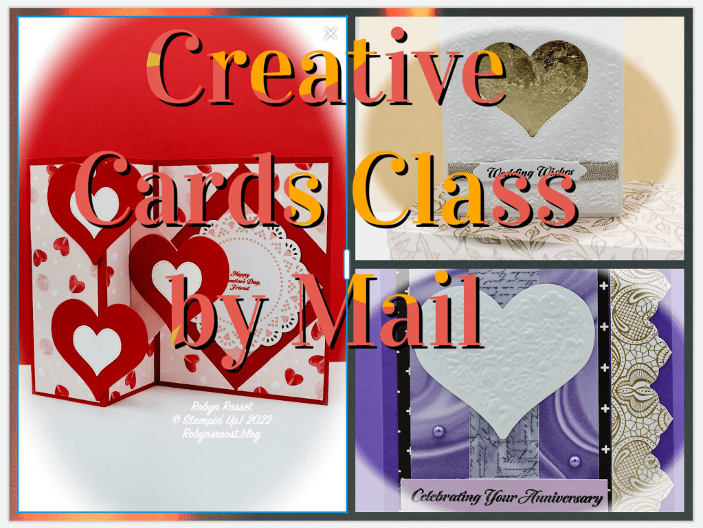 I’ve decide to offer my Creative Cards Class as a kit, delivered to your mailbox. The January kit features the Love & Happiness Bundle. It includes all of the paper pieces die cut and embossed, and embellishments to complete 3 unique cards. You will need to supply the stamps, inks and adhesives. When you purchase the kit you will receive an email with instructions which include a list of suggested supplies to complete the kit. Use greeting stamps from your stamp library or purchase the Love & Happiness stamp set. Cost is $12 and includes the shipping. Each card introduces a new technique or style. This month includes a Fold Back Pop-Up Technique, Gilded Leafing, Border Die Layers.