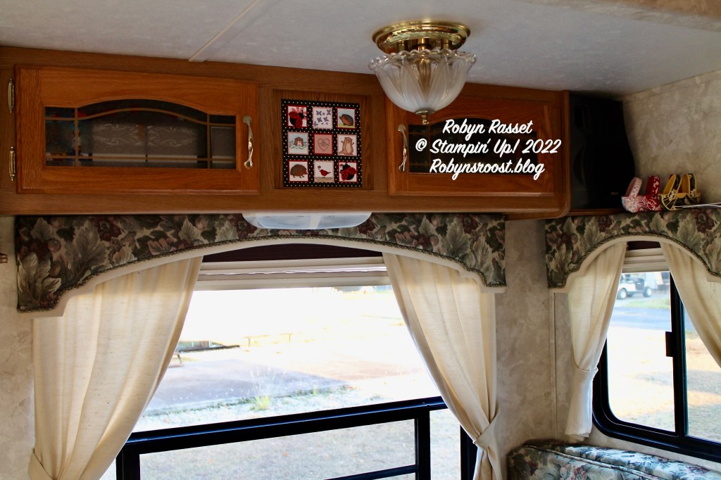 The 8″ square sampler fit just right in the space between the cabinets and now I have some Valentine cheer!