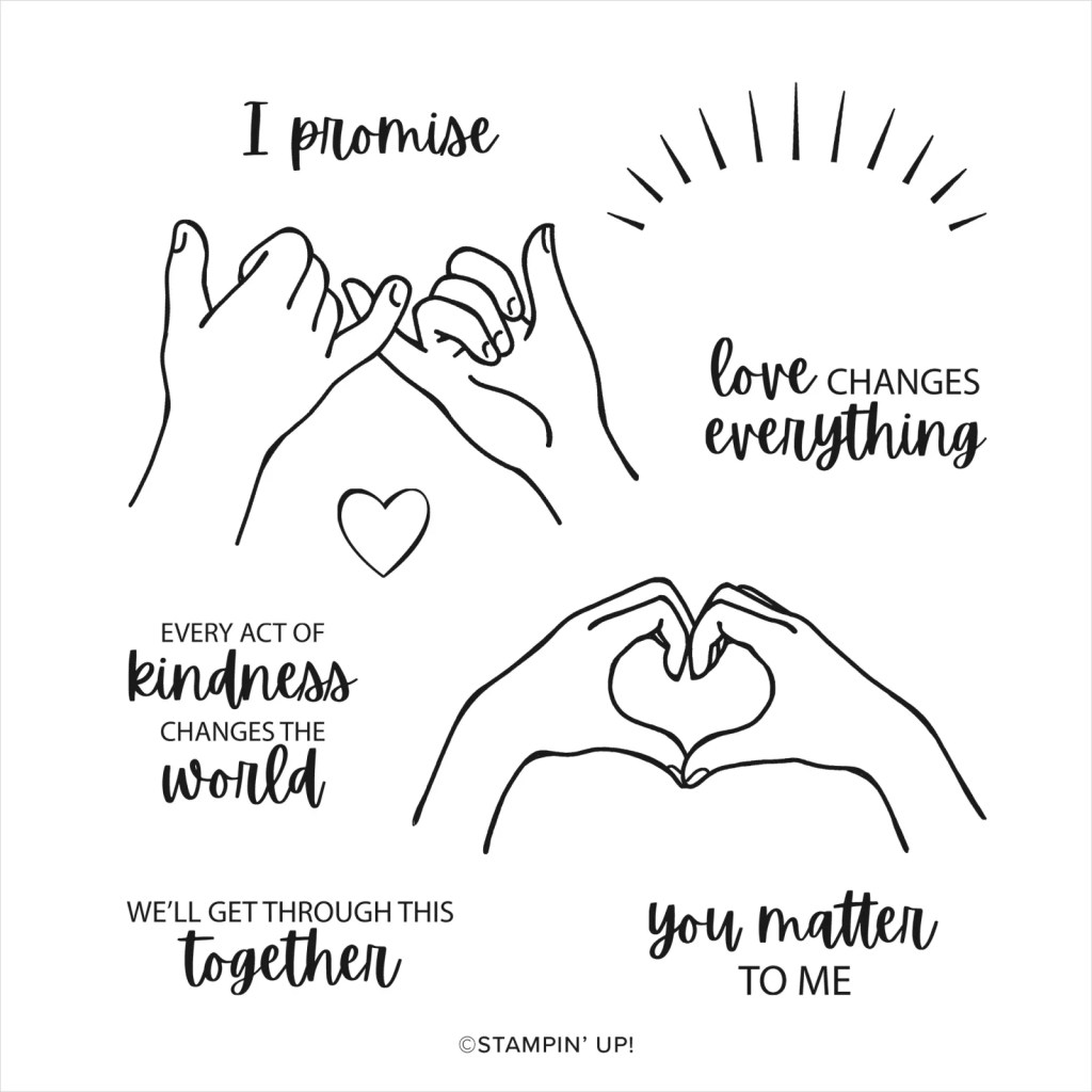 Show those you love most how much they mean to you with the Here Together Stamp Set. This stamp set features hand designs that illustrate coming together in friendship and solidarity. Color in the hands with the Natural Tones Stampin’ Blends Collection to represent you and your favorite people. Pair these images with the included heartfelt sentiments to let them know that you’ll always be there. It includes 9 cling stamps.