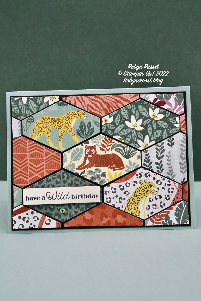 The first item that jumped out at me on the retiring list was the Tailored Tag Punch. It’s become one of my favorite go to punches and now that it’s 20% off, I would suggest purchasing it, if you don’t already have it. I decided to put together a card using the Tailored Tag Punch and pulled out the In the Wild Designer Series Paper which is now 40% off. The In the Wild Designer Series Paper would be great for scrapbooking pages for zoo days!